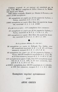 sur papier vergé de Hollande Van Gelder, imprimé spécialement pour Anne Green.