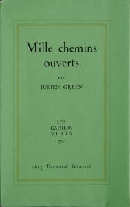 GREEN (Julien). Mille chemins ouverts. Paris, Grasset (Les Cahiers verts), 1964. In-16, broché, couverture rempliée (non coupé). Édition originale : un des 57 exemplaires de tête sur vergé de Hollande (n° III). Envoi autographe signé de...