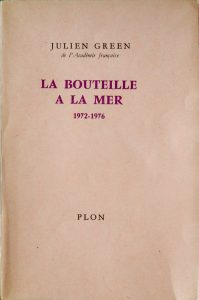 GREEN (Julien). La bouteille à la mer. 1972-1976. Paris, Plon, 1976. In-12 broché (non coupé). Édition originale de ce volume formant le tome X du Journal de Julien Green. Un des 28 exemplaires de tête sur Madagascar des papeteries Navarre, et...