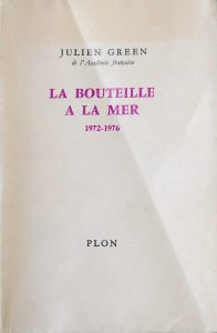 GREEN (Julien). La bouteille à la mer. 1972-1976. Paris, Plon, 1976. In-12, broché, couv. rempliée (couv. lég. insolée, non coupé). Édition originale de ce volume formant le tome X du Journal de Julien Green. Un des 35 exemplaires sur...