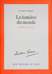 GREEN (Julien). La lumière du monde. 1978-1981. Paris, Seuil, 1983. In-8, broché (non rogné, en partie non coupé). Édition originale de cet ouvrage formant le tome XII du Journal de Julien Green. Exemplaire hors commerce n° 1, un des 75 sur...