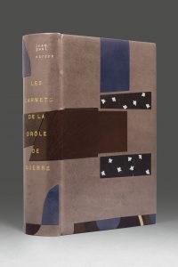 Édition originale. # Publiée de manière posthume, cette première édition contient le troisième, le cinquième, le onzième et le quatorzième des carnets tenus par Jean-Paul Sartre durant sa mobilisation en Alsace, entre septembre 1939 et juin 1940 ; à l'exception du premier carnet, qui ne sera publié qu'en 1995, les autres n'ont pas été retrouvés. # Un des 57 exemplaires de tête sur hollande van Gelder. # Séduisante reliure mosaïquée de Monique Mathieu. # Née en 1927, Monique Mathieu débute dans la reliure vers 1950. « Déjà elle se fait remarquer dans ses décors par son sens plastique d’un goût parfait et leur adaptation aux textes. À partir des années 1960, elle se consacre d’ailleurs entièrement à la recherche décorative en faisant exécuter ses reliures par des façonniers capables de matérialiser ses projets, toujours très étudiés… Depuis 1961, nous la voyons figurer avec honneur dans de nombreuses expositions en France et à l’étranger » (Julien Fléty). # Fléty, 124 – Peyré, 228.