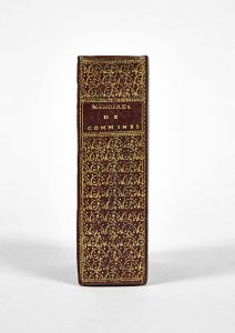 Édition imprimée à Leyde par Bonaventure et Abraham Elzevier.La première édition complète de ces célèbres chroniques parut en 1523. Avec ces chroniques des règnes de Louis XI à Charles VIII, Philippe de Commynes (1447-1498) crée « le genre des Mémoires historiques, dont il [fixe] les traits distinctifs : refus du beau style et de l’érudition, information précise d’un témoin oculaire, point de vue individuel ».Exemplaire de qualité, bien conservé.Dimensions : 129 x 75 mm.Aucune marque de provenance.Brunet, II, 191 ; Tchemerzine, II, 470 (« Jolie édition elzévirienne très recherchée ») ; Willems, n° 634 (« Édition admirablement exécutée ») ; Dufournet (J.), « Philippe de Commynes », in En français dans le texte, BNF, 1990, n° 38 ; De Backer (H.), Bibliothèque, I, 1, n° 173 (pour un exemplaire relié en maroquin par Trautz-Bauzonnet, d’une hauteur de 133 mm) ; Picot (É.), James de Rothschild, II, 1887, n° 2104 (pour un exemplaire relié en maroquin par Trautz-Bauzonnet ; dim. : 134 x 74 mm).