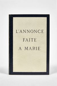 CLAUDEL (P.). L’Annonce faite à Marie…. Paris, Éditions de la Nouvelle Revue française – Marcel Rivière et Cie, 1912, in-12, maroquin bleu nuit à cadre, double filet à froid sertissant une grande pièce rectangulaire de daim ivoire, sur...