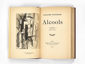 ÉDITION ORIGINALE du premier grand recueil de vers d’Apollinaire. Dès 1904, Guillaume Apollinaire (1880-1918) songeait à réunir l’essentiel de sa production poétique en une plaquette qui se serait intitulée Le Vent du Rhin. La composition générale du volume est achevée en 1912 et son titre est désormais Eau de vie. Seuls Zone et Chantre viendront rejoindre ultérieurement le recueil, dont le titre définitif, Alcools, donna lieu au préalable à de nombreuses discussions avec Gris, Raynal, Reverdy et Marcoussis. À sa parution, l’ouvrage dérouta lecteurs et critiques par son absence de ponctuation. L’auteur avait en effet décidé brutalement de supprimer tout signe de ponctuation sur les premières épreuves de son livre. Choix poétique qu’il justifia ainsi : « Pour ce qui concerne la ponctuation je ne l’ai supprimée que parce qu’elle m’a paru inutile et elle l’est en effet, le rythme même et la coupe des vers voilà la véritable ponctuation et il n’en est point besoin d’une autre. » (Lettre à Henri Martineau) Un portrait cubiste de l’auteur par Picasso. Exemplaire de qualité relié avec soin par Jean-Paul Miguet. Élève de l’école Estienne, puis praticien pour la Bibliothèque nationale, Jean-Paul Miguet ouvrit son propre atelier en 1951. Avec son épouse Colette, ils exercèrent jusqu’en 1981. Amincissure de papier restaurée, p. 71. Dimensions : 182 x 116 mm. Provenance : Jacques Nobécourt, avec son ex-libris à sa devise « Virtute fortunam resurgere ». Apollinaire (G.), Œuvres poétiques, Gallimard, La Pléiade, 1965, pp. 1039-1043 ; Fléty, p. 130.