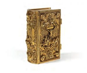 Office de La vierge marie. Florence, vers 1500. manuscrit sur peau de vélin de 228 ff., rel. en un vol. in-12, plats et dos en bronze ciselé doré, avec sur le 1er plat la Crucifixion, sur le second la Résurrection et sur le dos la Nativité, avec