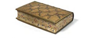 de maroquin vert, dos orné de même, doublés de vélin ivoire avec triples encadrements de filets dor., angelots dor. d’angles, semis d’étoiles dorés avec Marie rayonnante au centre, tr. ciselées et peintes (Trautz-bauzonnet) sous coffret emboîtage de maroquin laval usagé. Titre en lettres dorées dans un encadrement doré suivi du texte habituel d’une calligraphie en manière d’imprimerie en rouge et noir, avec initiales peintes en rouge et bleu, celles des têtes de chapitre plus élaborées avec motifs de fleurs. Il est composé des textes suivants : Matines, Laudes, Prime,Tierce, Sexte, Nones, Aves, Complies, Exercice spirituel, Les Vespres du dimanche et Hymne de l’église. Chaque page de texte à 15 lignes est entourée de filets dorés. 10 en-têtes portent en vignette les initiales dorées couronnées Av et Dc dans des décors de fleurs stylisées. nicolas jarry (1615-1666) maître écrivain français, a été au service du roi Louis Xiv, très prisé dès le xviie siècle et toujours recherché des bibliophiles, sa production consiste en livres de dévotion et de liturgie : Psautier, Offices de la Vierge Marie, Heures de Notre-Dame, etc. Provenance : Eugène Paillet, John Roland Abbey. Henry W.Porr, Mortimer Schiff, et A. Blacque.