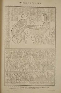 [Egyptologie]. Young (Thomas). Hieroglyphics, collected by The Egyptian Society, arran-ged by Thomas Young, M.D. F.R.S. London, s.n.e. 1823. Gd in-folio. Iii ff. de texte, 1 f. liste des souscripteurs, 36 pl., 3 ff. d'index (ch. 38 à 40).