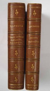 Maynard (François de). Œuvres poétiques. - Poésies diverses et vers inédits du même auteur. Paris, J. Guy 1864-1867. 2 vol. in-12. 1/2 maroquin havane à coins, dos orné de cais-sons et fleurons d'Alde dorés, tête dor. (Rel. d'époque).