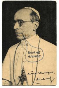 Carte postale représentant le pape, légendée et signée au recto par Alechinsky.