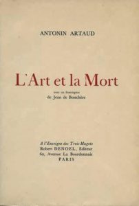 Artaud Antonin. L’art Et La Mort. Avec un frontispice de Jean de Bosschère. Paris, A l’Enseigne des Trois Magots - Robert Denoël éditeur, 1929. In-4 vertical, broché.