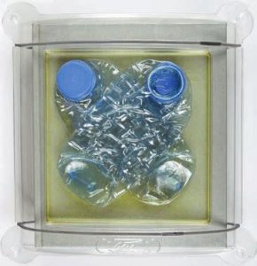 César-Arman. Chimériques Polymères. Nice, Musée d’Art moderne et d’Art contemporain, 1996. In-4, sous couverture plastifiée, le premier plat est conçu par César, et représente deux petites bouteilles d’eau en plastique, le second plat est