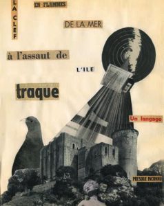 ALBUM UNIQUE COMPORTANT UNE DÉCALCOMANIE ORIGINALE SERVANT DE FRONTISPICE PORTANT LE TITRE ET LE NOM DE L ’AUTEUR ET 13 COLLAGES ORIGINAUX DE FORMAT 32 x 24 cm illustrés detextes découpés etcontrecollés. EXEMPLAIRE DÉDICACÉ ÀANDRÉ BRETON : « Pour André Breton un aveugle étoilé Pierre Dhainaut ». BELLE RÉALISATION ETSUPERBES COLLAGES DE PIERRE DHAINAUT.