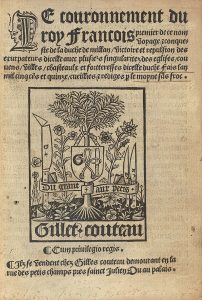 Le Moyne Pasquier. Le couronnement du roy François premier de ce nom. Voyage & conqueste de la duché de Millan. Victoire et répulsion des exurpateurs dicelle ... fais lan mil cinq c[en]s et quinze, cueillies & rédigés p[ar] le moyne sa[n]s froc....