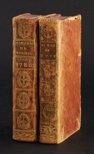Almanach historique de Marseille. Marseille, chez Jean Mossy, 1774. In-12. " Contenant les éphémérides, calculées sur son méridien, & l'état raisonné de l'Eglise ; du gouvernement civil et militaire ; de la marine ; des tribunaux de justice ;...