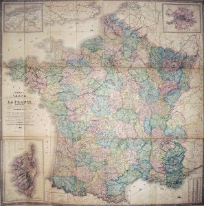 [Carte géographique]. CHARLE, LETRONNE. Nouvelle carte administrative, militaire, routière, et industrielle de la France. Dressée par Charles, sous la direction de M. Letronne. Paris, Clérot, 1863. Une très grande carte gravée (180 × 180 cm),...