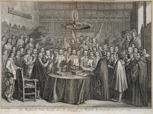 Composé de 6 grandes cartes dépliantes, 41 vues (paysages et scènes) dépliantes, gravées par Fokke ou Folkema, 88 portraits gravés par Houbraken. Précédé d'un frontispice portant l'adresse d'Isaak Thirion, à Amsterdam, et la date de 1739. Quelques dates figurent sur des gravures, la plus récente sur une carte est 1754, et sur un des derniers portraits, 1759. Deux planches plus récentes ont été reliées en fin de volume. Très belle suite.