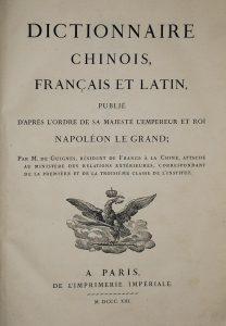 Ce dictionnaire sans équivalent, composé entre 1694 et 1699 par le père Basile de Gemona (1648-1704), missionnaire franciscain en Chine, circula à l'origine sous forme manuscrite. La complexité technique d'une telle entreprise éditoriale en différa longtemps la publication. Les caractères chinois nécessaires furent gravés sur bois sous la direction d'Etienne Fourmont, entre 1715 et 1742, on les appela les "buis du roi", et ils furent déposés en 1745 à la bibliothèque du roi. Il faut attendre 1802 pour les voir arriver dans les collections de l'Imprimerie impériale, c'est en 1808 qu'un nouveau projet éditorial est lancé, confié à Chrétien Louis Joseph de Guignes, ancien consul de France en Chine.