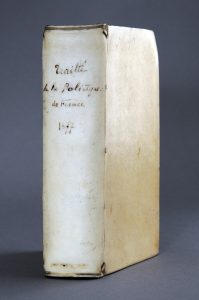 [HAY DU CHATELET (Paul)]. Traitté de la politique de France. Par monsieur P.H., marquis de C. A Cologne, chez Pierre du Marteau, 1677. Deux parties en un volume in-12, 360-165 p., [1] f., reliure de l'époque plein vélin ivoire, dos lisse, titre à...
