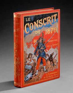 Cahu (Théodore) & Sémant (Paul de). Le Conscrit De 1870. Paris, Flammarion, s. d. (vers 1900). Un volume, grand in-8, de (2) ff., 712 pp., cartonnage éditeur personnalisé, polychrome, sur percaline rouge, tranches dorées. Bel exemplaire.
