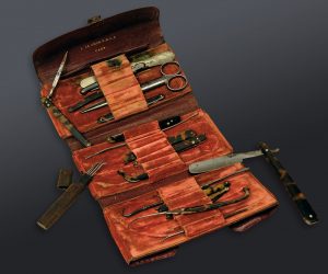 L'exemplaire est conservé dans un étui de chagrin brun, orné de roulettes et fleurons dorés, dont un aux initiales " E.M. ". On peut dater cet étui de 1895 d'après une note d'ex-dono figurant à l'intérieur.