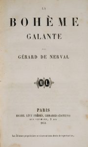 NERVAL (Gérard de). La bohème galante. Paris, Michel Lévy frères, 1855. In-12, VII p., p.[5]-314, [1] f., reliure fin XIXe s. demi-chagrin vert foncé, dos lisse, auteur, titre et filets dorés (accrocs à la coiffe de tête et aux bords des...