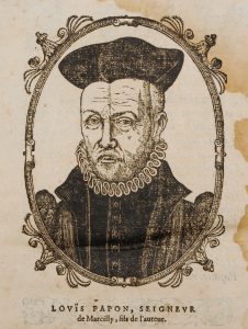 PAPON (Jean). Sixième édition du Recueil d'arrests notables des cours souveraines de France. À Lyon, par Jean de Tournes, 1585. In-folio, [4] f., 837 p., [23] f., titre dans un encadrement gravé sur bois, portrait de l'auteur gravé sur bois au...