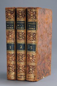 STEDMAN (J. G.). Voyage au Surinam et dans l'intérieur de la Guiane. Traduit de l'anglais par P.F. Henry. À Paris, chez F. Buisson, an VII - 1798]. Trois volumes in-8, reliure de l'époque basane écaille, dos lisses et ornés, pièces de titre et...