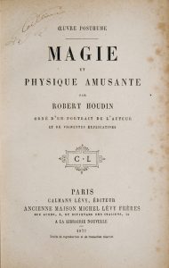 ROBERT-HOUDIN. Magie et physique Amusante. Paris, Calmann Lévy, 1877, in-12, portrait-frontispice, [4]-XLIII-295-[1] p., demi-toile chagrinée verte postérieure, pièce de titre brune. Édition originale, posthume. Suite des Secrets de la...
