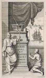 Première et unique édition, rare, de ce livre sur la construction et l'usage de plusieurs instruments scientifiques, dont une clepsydre, représentée sur le frontispice gravé par Le Pautre ; Amontons propose ici, de nouveau, l'usage de la clepsydre en mer pour résoudre le problème du calcul de la longitude.