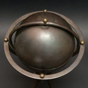PAIRE DE GLOBES DÉCORATIFS. Laiton. Année 1930/1950. H. : 43 cm. Diam. : 50 cm. Sur piètement tripode.