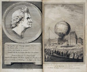 FAUJAS DE SAINT-FOND. Description des expériences de la machine aérostatique de MM. de Montgolfier. À Paris, chez Cuchet, 1784. In-8, XL-303 p., [1] f. (privil.), un portrait h.-t. et 10 planches (dont la pl. 5 placée en frontispice) le tout...