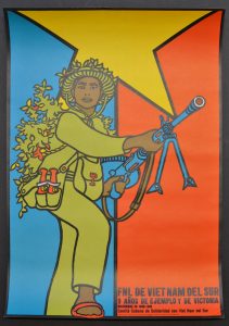 MEDEROS PAZOS (Felix René). "Como en Vietnam" et "FNL de Vietnam del Sur" (1969). Ensemble de 2 sérigraphies en couleurs éditées par le collectif intersyndical universitaire d'action Viet-Nam, Laos, Cambodge. Dim. : 73,5 x 49 cm et 69 x 47,5 cm....