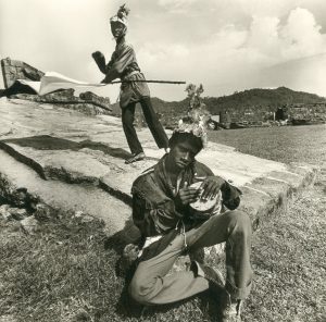 ELETA (Sandra). "Baile de bandera" (1980). Tirage argentique d'époque, titré, daté, signé au crayon et monté sous passe-partout blanc et cadre noir en alu mat. Dim. cadre : 41 x 41 cm ; sujet : 20 x 20 cm. Sandra Eleta est une photographe...