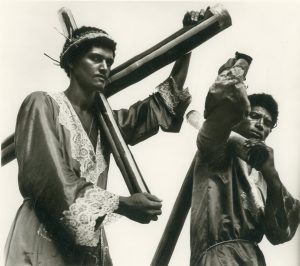 ELETA (Sandra). "Penitentes del Cristo Negro" (1977). Tirage argentique d'époque, titré, daté, signé au crayon et monté sous passe-partout blanc et cadre noir en alu mat. Dim. cadre : 41 x 41 cm ; sujet : 20 x 20 cm.