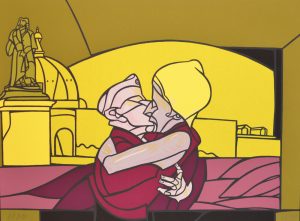 ADAMI (Valerio). "Il Bacio" [Le Baiser]. Sérigraphie en couleurs tirée sur fort vélin, justifiée et signée au crayon. Dim. support et sujet : 35 x 47 cm.