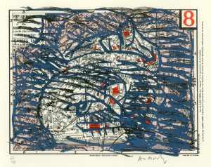 ALECHINSKY (Pierre). "Plan du VIIIe arrondissement" (1983). Lithographie en couleurs tirée sur fac-similé de plan, just. 62/99, signée au crayon et montée sous passe-partout blanc et cadre noir. Dim. cadre : 41 x 51 cm ; sujet : 19,5 x 24,5 cm.