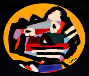 APPEL (Karel). Sans titre [Personnage]. Plat en céramique émaillée. A'dam, Reflex Modern Art Gallery, (ca 1985), dim. : 33 cm de diamètre. Tirage limité à 999 ex. num. (n° 3). Sous carton d'origine.