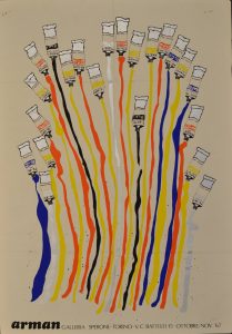 ARMAN (Armand Fernandez, dit). Affiche d'intérieur (1967). Sérigraphie en couleurs tirée sur papier offset pour son exposition personnelle à la Galleria Sperone à Turin. Dim. : 49 x 34,5 cm (affiche pliée, trous de punaise dans les coins).