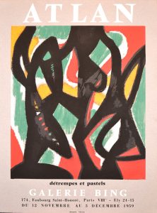 ATLAN (Jean-Michel). Affiche (1959). Sérigraphie en couleurs tirée sur vergé Ingres d'Arches teinté. Planche éditée pour son exposition de "détrempes et pastels" à la Galerie Bing à Paris. P., Paris-Arts, 1959, dim. : 64 x 47,5 cm.