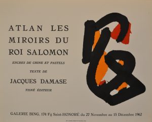 ATLAN (Jean-Michel). Affiche (1962). Lithographie en couleurs tirée sur vélin d'Arches à l'occasion de la publication à la Galerie Bing du livre "Les Miroirs du roi Salomon" (ouvrage édité par Tisné et illustré par Atlan avec un texte de...