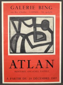 ATLAN (Jean-Michel). Affiches (1956-1967). Ensemble de 4 affiches (3 typographiques et 1 illustrée en offset) pour des expositions personnelles de Jean-Michel Atlan à la Galerie Bing (1956 et 1965), au Palais des Beaux-Arts de Bruxelles (1957) et...