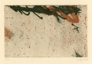 BELGEONNE (Gabriel). Sans titres (1993). Ensemble de 2 eaux-fortes en couleurs tirées sur vélin d'Arches, just. 6/50, signées au crayon et montées individuellement sous passe-partout blanc et cadre noir. Brux., Claude Deby, 1993, dim. cadre : (2...