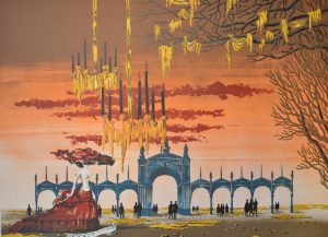 BOGAERT (Gaston). Sans titre. Lithographie originale en couleurs tirée sur vélin d'Arches, just. 111/145 et signée au crayon. Dim. support : 56,5 x 77 cm ; sujet : 50 x 65 cm (lég. insolé).