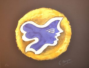 BRAQUE (Georges). "Oedipe Roi, Sophocle". Lithographie d'interprétation en couleurs d'après une gouache originale de Braque, just. 2/290 au crayon et signée dans la planche. P., A. et G. Israël, 1988, dim. support et sujet : 45 x 58 cm.