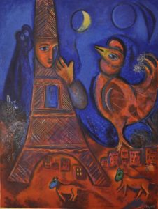 CHAGALL (Marc). "Bonjour Paris" (1939). Lithographie d'interprétation en couleurs exécutée par Charles Sorlier, tirée sur papier offset et montée sous passe-partout (sans fond). Signature et justification apocryphes. P., Mourlot, 1972, dim....