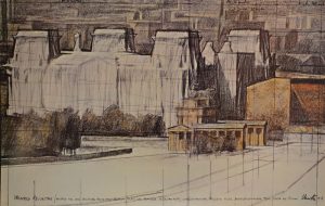 CHRISTO et JEANNE-CLAUDE. "Wrapped Reichstag (Project for der Deutsche Reichstag - Berlin)" (1978). Planche en quadrichromie tirée sur papier glacé, signée au marqueur noir par Christo. Dim. : 62 x 98 cm.