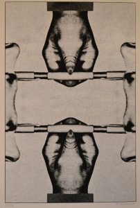 CIESLEWICZ (Roman). "Parallèle" (1974). Sérigraphie originale en noir tirée sur fort papier offset, just. 55/150 et signée au crayon. Dim. support : 77,5 x 50,5 cm ; sujet : 71 x 47 cm.