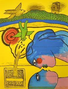 CORNEILLE (C. van Beverloo, dit). "Dialogue amoureux" (2002). Lithographie en couleurs tirée sur papier vélin, titrée, just. E.A., datée et signée au crayon. Dim. support et sujet : 50 x 65 cm.