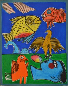CORNEILLE (C. van Beverloo, dit). "La Vie est belle" (2001). Lithographie en couleurs tirée sur vélin de Rives, just. E.A. 18/20, datée et signée au crayon. Dim. support : 60 x 50 cm ; sujet : 50 x 40 cm.